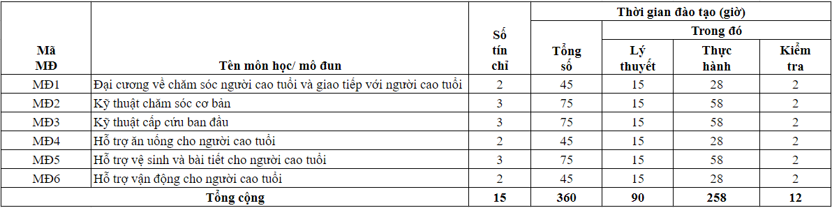 – Trình bày được những nguyên tắc, quy trình, kỹ thuật, cơ bản về chăm sóc người cao tuổi.